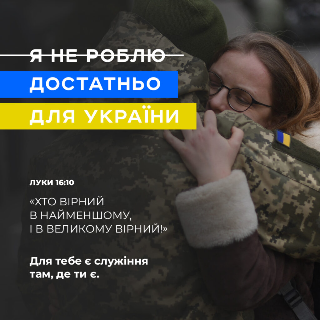 Кожен з нас знаходиться саме там, де Бог може нас використати. Маріуполь, Київ, Львів, чи Краків, де б ви зараз не знаходились, там є простір для праці за Україну. Ваша дитина плаче? Втіште, бо це майбутнє покоління мирної України! Ви натрапили на фейк? Розкажіть рідним та друзям, щоб вони оминули ментальну пастку. У вас є пакетик чаю, окріп та печиво? Відвідайте сусідів та заспокойте їх. Маєте роботу? Працюйте та платіть податки, щоб допомогти Україні вийти з економічних наслідків війни.